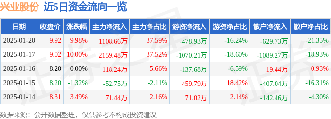 1月20日的资金流向数据方面,主力资金净流入1108.66万元,占总成交额37.59%,游资资金净流出478.93万元,占总成交额16.24%,散户资金净流出629.73万元,占总成交额21.35%。