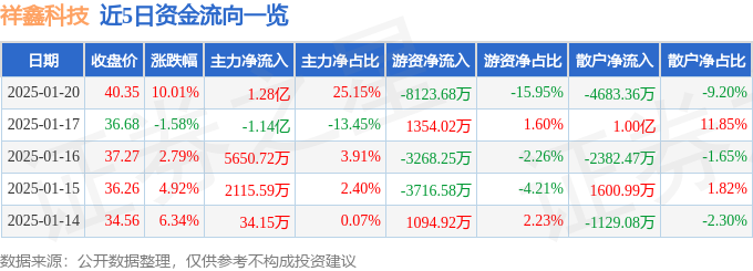 1月20日的资金流向数据方面,主力资金净流入1.28亿元,占总成交额25.15%,游资资金净流出8123.68万元,占总成交额15.95%,散户资金净流出4683.36万元,占总成交额9.2%。