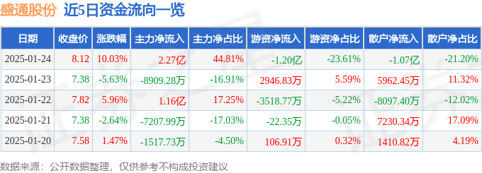 1月24日的资金流向数据方面,主力资金净流入2.27亿元,占总成交额44.81%,游资资金净流出1.2亿元,占总成交额23.61%,散户资金净流出1.07亿元,占总成交额21.2%。