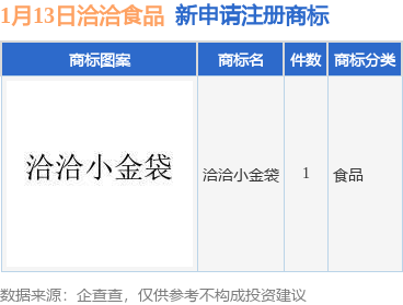 今年以来洽洽食品股份有限公司新申请注册商标6件,截止目前公司共持有注册商标2454件,另有215件商标尚在注册申请中。