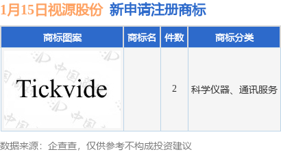 今年以来广州视源电子科技股份有限公司新申请注册商标2件,截止目前公司共持有注册商标2708件,另有50件商标尚在注册申请中。