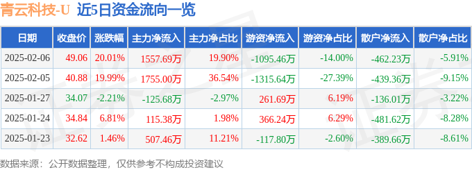 2月6日的资金流向数据方面,主力资金净流入1557.69万元,占总成交额19.9%,游资资金净流出1095.46万元,占总成交额14.0%,散户资金净流出462.23万元,占总成交额5.91%。