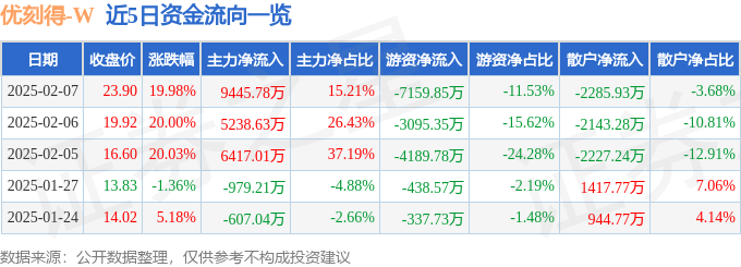 2月7日的资金流向数据方面,主力资金净流入9445.78万元,占总成交额15.21%,游资资金净流出7159.85万元,占总成交额11.53%,散户资金净流出2285.93万元,占总成交额3.68%。