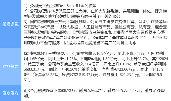 该股为DeepSeek概念股,智谱AI,东数西算/算力概念热股,当日DeepSeek概念股概念上涨5.43%,智谱AI概念上涨4.0%,东数西算/算力概念上涨3.55%。