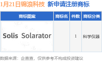 今年以来锦浪科技股份有限公司新申请注册商标1件,截止目前公司共持有注册商标344件,另有27件商标尚在注册申请中。