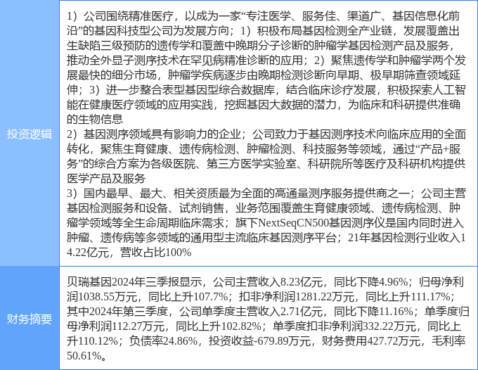 该股为精准医疗,体外诊断,基因测序概念热股,当日精准医疗概念上涨5.52%,体外诊断概念上涨5.29%,基因测序概念上涨4.94%。