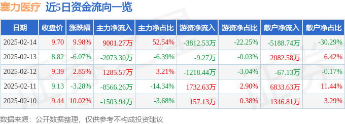 2月14日的资金流向数据方面,主力资金净流入9001.27万元,占总成交额52.54%,游资资金净流出3812.53万元,占总成交额22.25%,散户资金净流出5188.74万元,占总成交额30.29%。