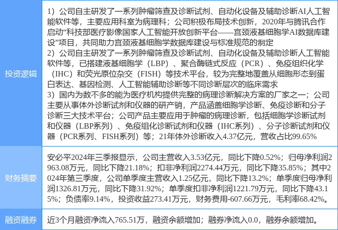 该股为AI医疗,基因测序,体外诊断概念热股,当日AI医疗概念上涨7.93%,基因测序概念上涨3.65%,体外诊断概念上涨2.9%。