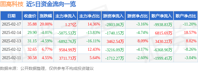 2月17日的资金流向数据方面,主力资金净流入1.27亿元,占总成交额14.36%,游资资金净流出2803.06万元,占总成交额3.16%,散户资金净流出9938.83万元,占总成交额11.2%。