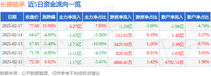 2月17日的资金流向数据方面,主力资金净流入3.27亿元,占总成交额7.83%,游资资金净流出1.29亿元,占总成交额3.09%,散户资金净流出1.98亿元,占总成交额4.74%。