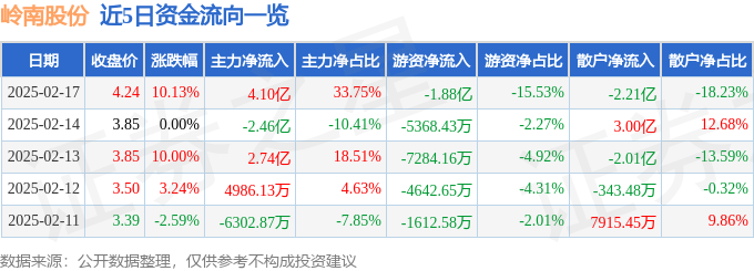 2月17日的资金流向数据方面,主力资金净流入4.1亿元,占总成交额33.75%,游资资金净流出1.88亿元,占总成交额15.53%,散户资金净流出2.21亿元,占总成交额18.23%。