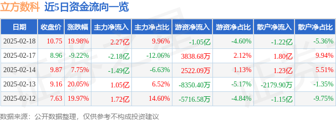 2月18日的资金流向数据方面,主力资金净流入2.27亿元,占总成交额9.96%,游资资金净流出1.05亿元,占总成交额4.6%,散户资金净流出1.22亿元,占总成交额5.36%。