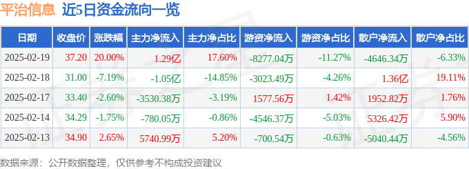 2月19日的资金流向数据方面,主力资金净流入1.29亿元,占总成交额17.6%,游资资金净流出8277.04万元,占总成交额11.27%,散户资金净流出4646.34万元,占总成交额6.33%。