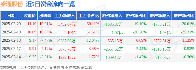 2月20日的资金流向数据方面,主力资金净流入3452.07万元,占总成交额39.11%,游资资金净流出1685.87万元,占总成交额19.1%,散户资金净流出1766.21万元,占总成交额20.01%。