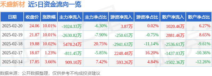 2月20日的资金流向数据方面,主力资金净流出1024.33万元,占总成交额6.3%,游资资金净流入3.87万元,占总成交额0.02%,散户资金净流入1020.46万元,占总成交额6.27%。