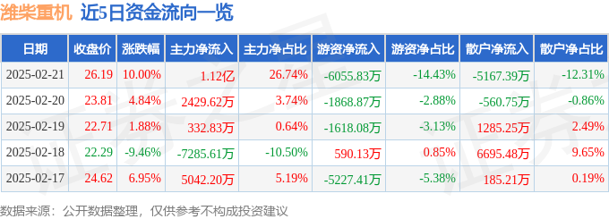 2月21日的资金流向数据方面,主力资金净流入1.12亿元,占总成交额26.74%,游资资金净流出6055.83万元,占总成交额14.43%,散户资金净流出5167.39万元,占总成交额12.31%。