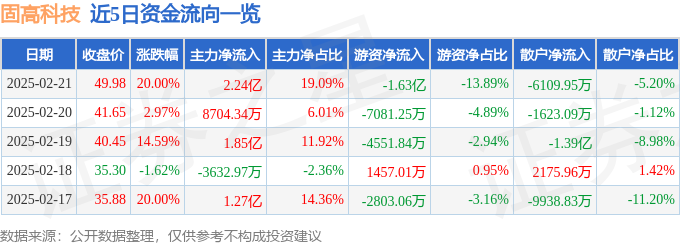 2月21日的资金流向数据方面,主力资金净流入2.24亿元,占总成交额19.09%,游资资金净流出1.63亿元,占总成交额13.89%,散户资金净流出6109.95万元,占总成交额5.2%。