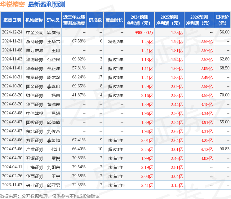 以下是详细的盈利预测信息: