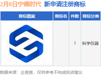 今年以来宁德时代新能源科技股份有限公司新申请注册商标24件,截止目前公司共持有注册商标795件,另有525件商标尚在注册申请中。