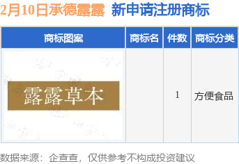 今年以来承德露露股份公司新申请注册商标1件,截止目前公司共持有注册商标666件,另有151件商标尚在注册申请中。