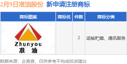 今年以来新疆准东石油技术股份有限公司新申请注册商标4件,截止目前公司共持有注册商标82件,另有6件商标尚在注册申请中。