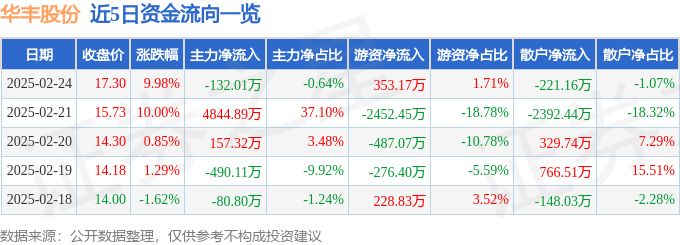 2月24日的资金流向数据方面,主力资金净流出132.01万元,占总成交额0.64%,游资资金净流入353.17万元,占总成交额1.71%,散户资金净流出221.16万元,占总成交额1.07%。