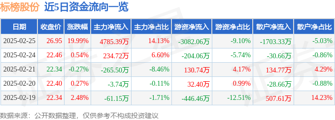 2月25日的资金流向数据方面,主力资金净流入4785.39万元,占总成交额14.13%,游资资金净流出3082.06万元,占总成交额9.1%,散户资金净流出1703.33万元,占总成交额5.03%。