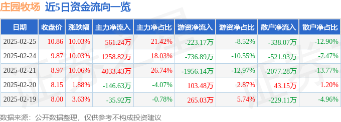 今日庄园牧场涨停的可能因素有:1)原奶行业供需格局改善预期增强,产能出清推动行业拐点;2)2025年中央一号文件释放畜牧业政策利好,乡村振兴及生态农业概念热度提升;3)公司整合营销策略与甘肃文旅IP深度结合,通过KOL视频及直播带货扩大品牌影响力;4)乳业板块整体走强带动个股表现,当日乳业(奶粉)概念上涨1.08%。