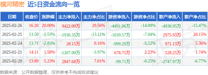 2月26日的资金流向数据方面,主力资金净流入9422.0万元,占总成交额29.56%,游资资金净流出4491.06万元,占总成交额14.09%,散户资金净流出4930.95万元,占总成交额15.47%。