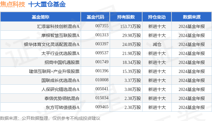 持有焦点科技最多的基金为汇添富科技创新混合A,目前规模为20.48亿元,最新净值2.3993(2月26日),较上一交易日上涨1.57%,近一年上涨52.04%。该基金现任基金经理为马翔。