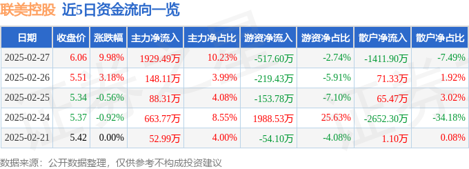 近5日资金流向一览见下表: