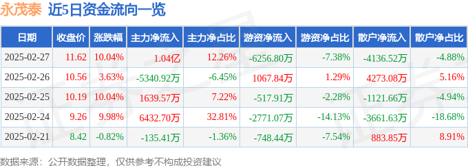 2月27日的资金流向数据方面,主力资金净流入1.04亿元,占总成交额12.26%,游资资金净流出6256.8万元,占总成交额7.38%,散户资金净流出4136.52万元,占总成交额4.88%。