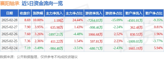 2月28日的资金流向数据方面,主力资金净流入1.18亿元,占总成交额24.44%,游资资金净流出7264.03万元,占总成交额15.09%,散户资金净流出4501.01万元,占总成交额9.35%。