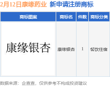 今年以来江苏康缘药业股份有限公司新申请注册商标1件,截止目前公司共持有注册商标570件,另有64件商标尚在注册申请中。
