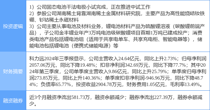 该股为固态电池,锂电池,稀土磁材概念热股,当日固态电池概念上涨4.33%,锂电池概念上涨3.5%,稀土磁材概念上涨2.51%。