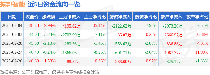 3月4日的资金流向数据方面,主力资金净流入4195.82万元,占总成交额35.44%,游资资金净流出2122.62万元,占总成交额17.93%,散户资金净流出2073.2万元,占总成交额17.51%。