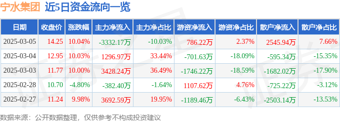 3月5日的资金流向数据方面,主力资金净流出3332.17万元,占总成交额10.03%,游资资金净流入786.22万元,占总成交额2.37%,散户资金净流入2545.94万元,占总成交额7.66%。