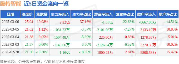 3月6日的资金流向数据方面,主力资金净流入2.22亿元,占总成交额37.16%,游资资金净流出1.35亿元,占总成交额22.66%,散户资金净流出8667.08万元,占总成交额14.51%。