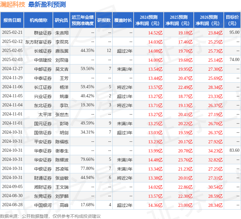 以下是详细的盈利预测信息: