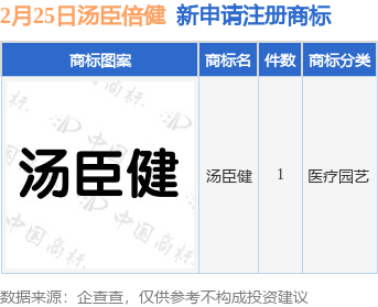今年以来汤臣倍健股份有限公司新申请注册商标35件,截止目前公司共持有注册商标7918件,另有294件商标尚在注册申请中。