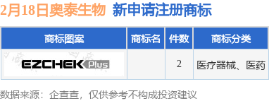 今年以来杭州奥泰生物技术股份有限公司新申请注册商标3件,截止目前公司共持有注册商标325件,另有57件商标尚在注册申请中。