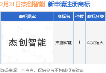 今年以来杰创智能科技股份有限公司新申请注册商标1件,截止目前公司共持有注册商标190件,另有53件商标尚在注册申请中。
