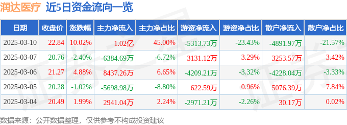 3月10日的资金流向数据方面,主力资金净流入1.02亿元,占总成交额45.0%,游资资金净流出5313.73万元,占总成交额23.43%,散户资金净流出4891.97万元,占总成交额21.57%。