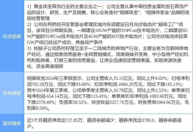 该股为珠宝饰品,房产经纪,光伏概念热股,当日珠宝饰品概念上涨2.49%,房产经纪概念上涨1.15%,光伏概念上涨0.41%。