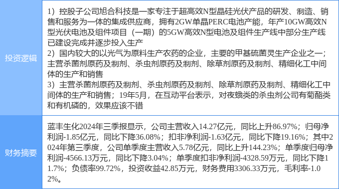 该股为虫害防治,农药,光伏概念热股,当日虫害防治概念上涨1.19%,农药概念上涨1.1%,光伏概念上涨0.41%。