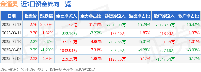 3月12日的资金流向数据方面,主力资金净流入1.58亿元,占总成交额31.71%,游资资金净流出7613.99万元,占总成交额15.29%,散户资金净流出8178.49万元,占总成交额16.42%。