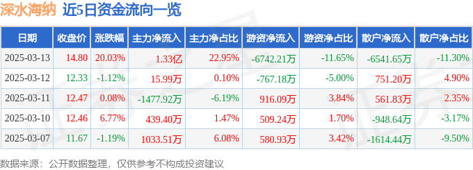 3月13日的资金流向数据方面,主力资金净流入1.33亿元,占总成交额22.95%,游资资金净流出6742.21万元,占总成交额11.65%,散户资金净流出6541.65万元,占总成交额11.3%。