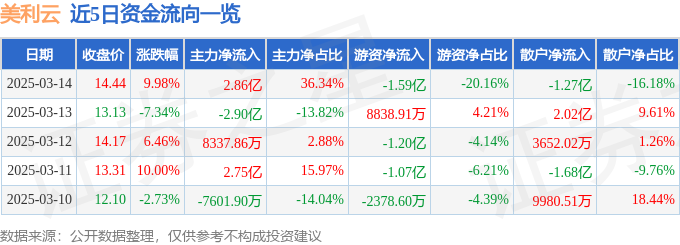 3月14日的资金流向数据方面,主力资金净流入2.86亿元,占总成交额36.34%,游资资金净流出1.59亿元,占总成交额20.16%,散户资金净流出1.27亿元,占总成交额16.18%。
