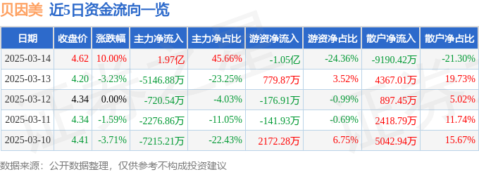 3月14日的资金流向数据方面,主力资金净流入1.97亿元,占总成交额45.66%,游资资金净流出1.05亿元,占总成交额24.36%,散户资金净流出9190.42万元,占总成交额21.3%。