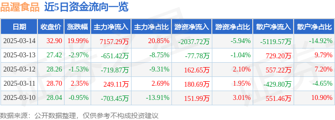 3月14日的资金流向数据方面,主力资金净流入7157.29万元,占总成交额20.85%,游资资金净流出2037.72万元,占总成交额5.94%,散户资金净流出5119.57万元,占总成交额14.92%。
